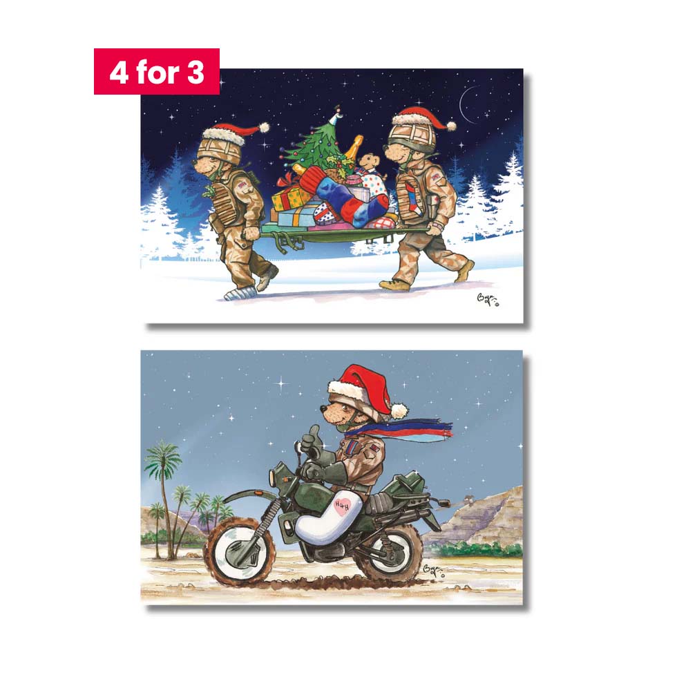 Exclusively designed Christmas cards by artist and co-founder of Help for Heroes, Bryn Parry CBE. This box set includes two fantastic Xmas illustrations of festive military bears.